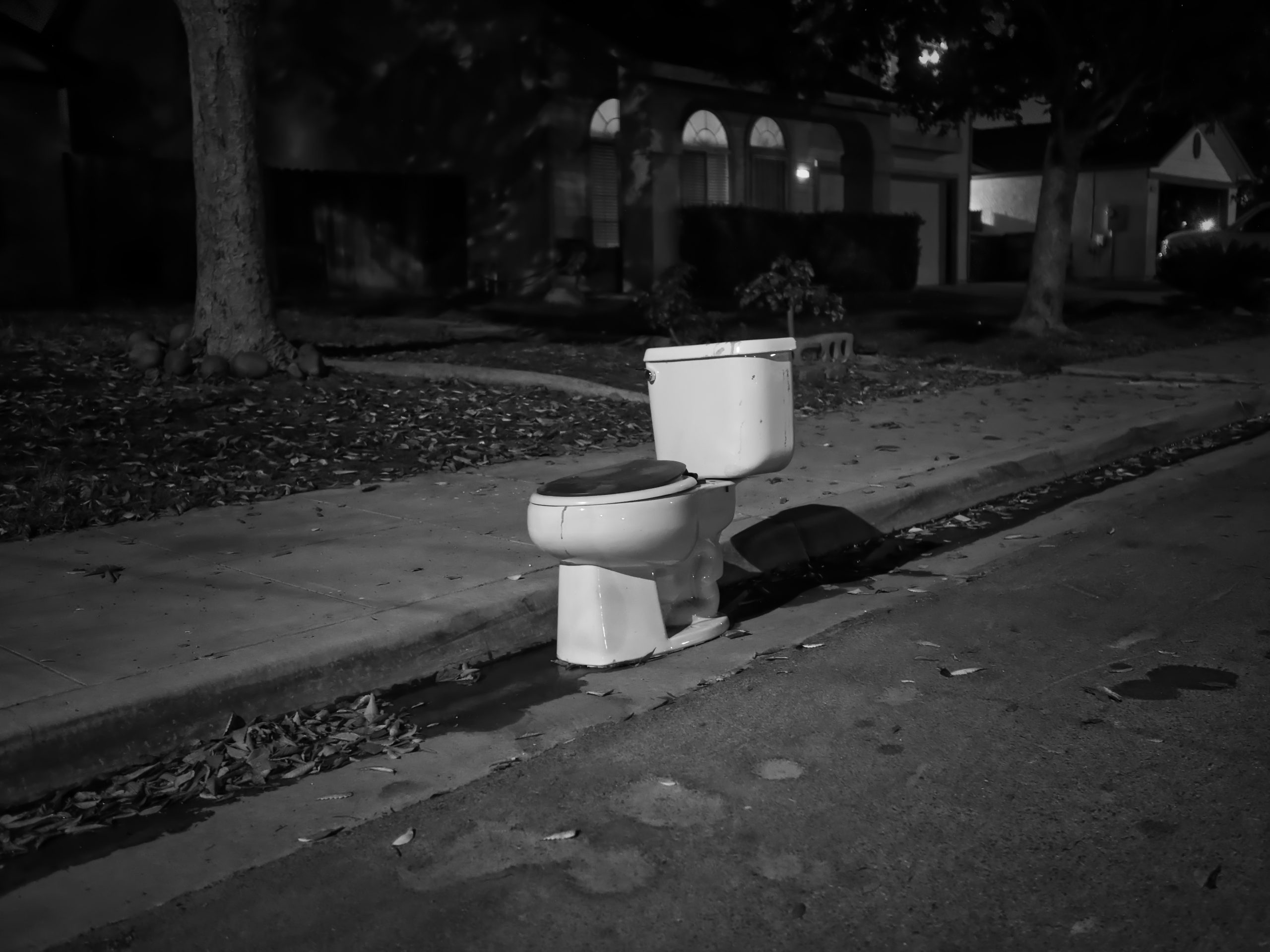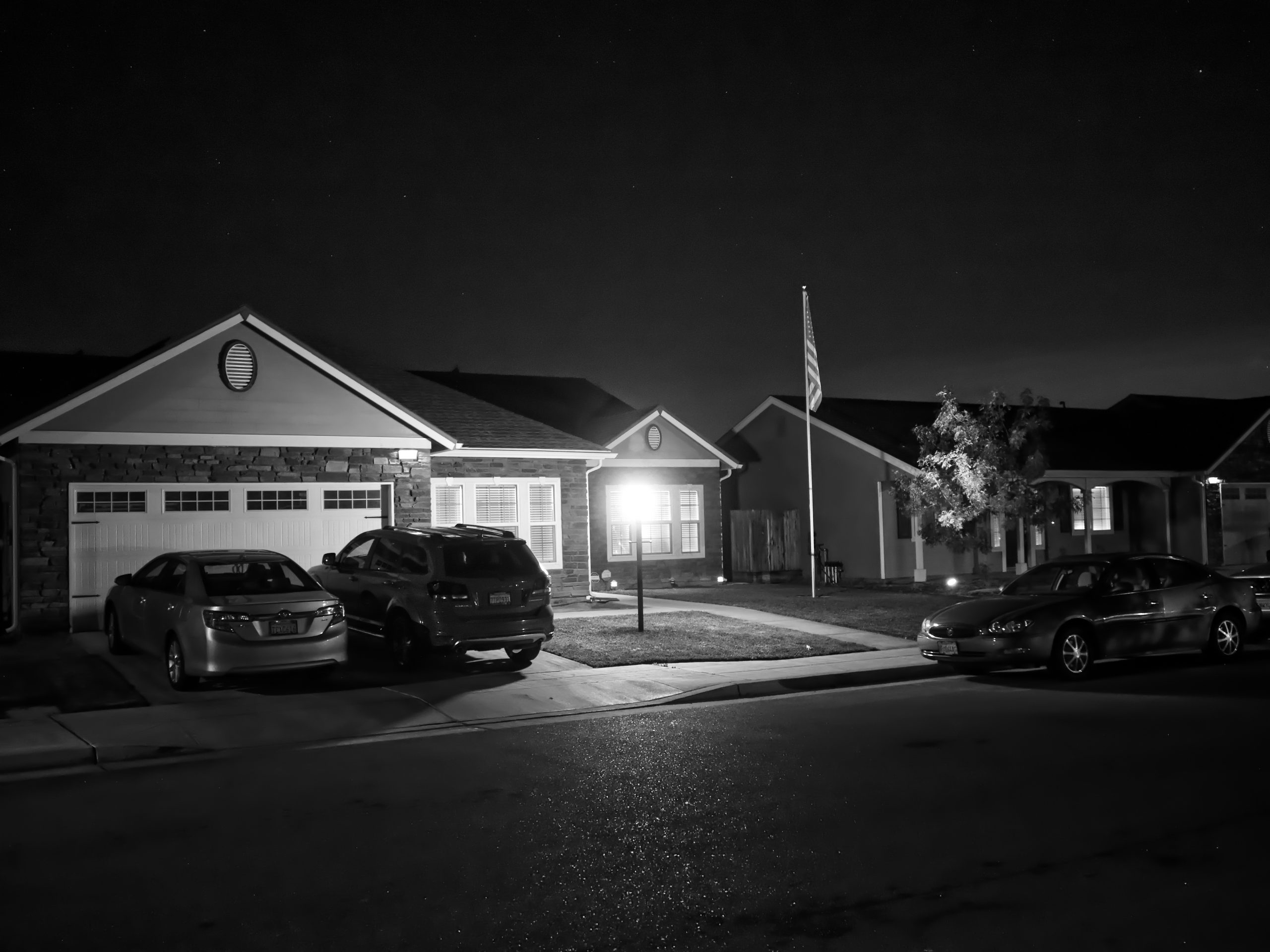 Taking a walk around the neighborhood at night.
