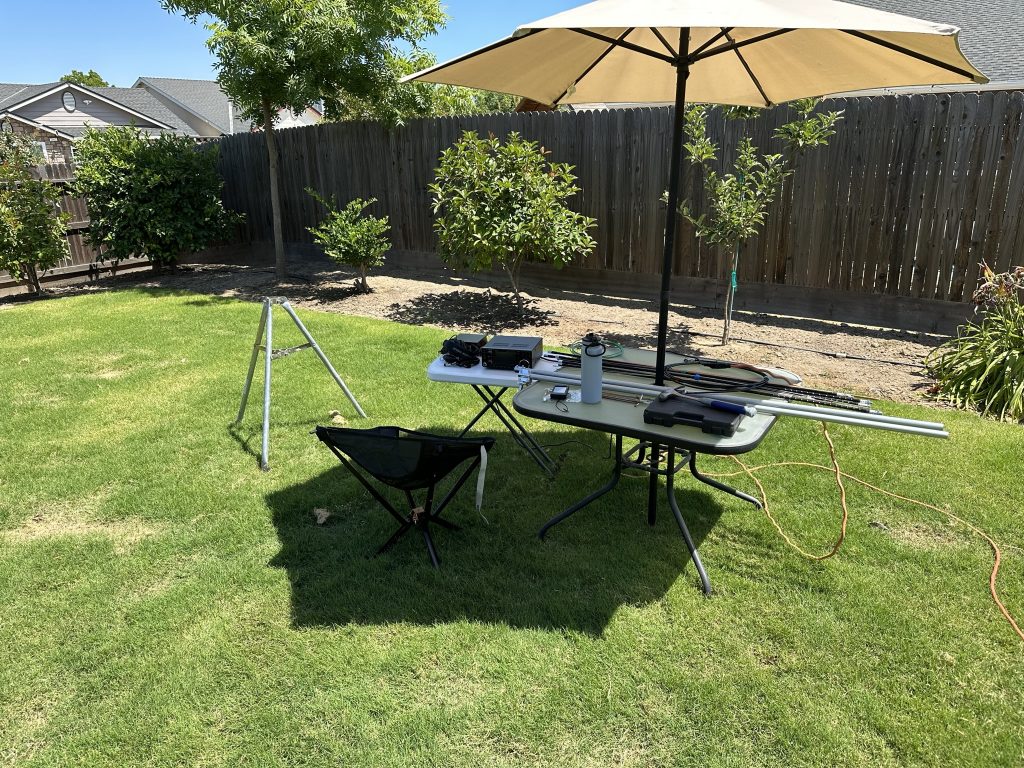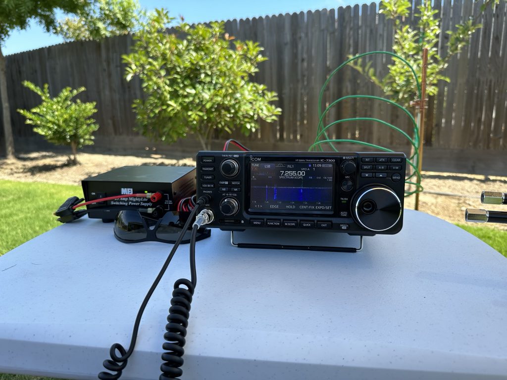 Tested running the IC-7300 portable from the backyard today and ended up working 3 POTA stations on 20m. Using 40m, 20m & 10m hamstick dipoles as a portable antenna setup until I can get something better.