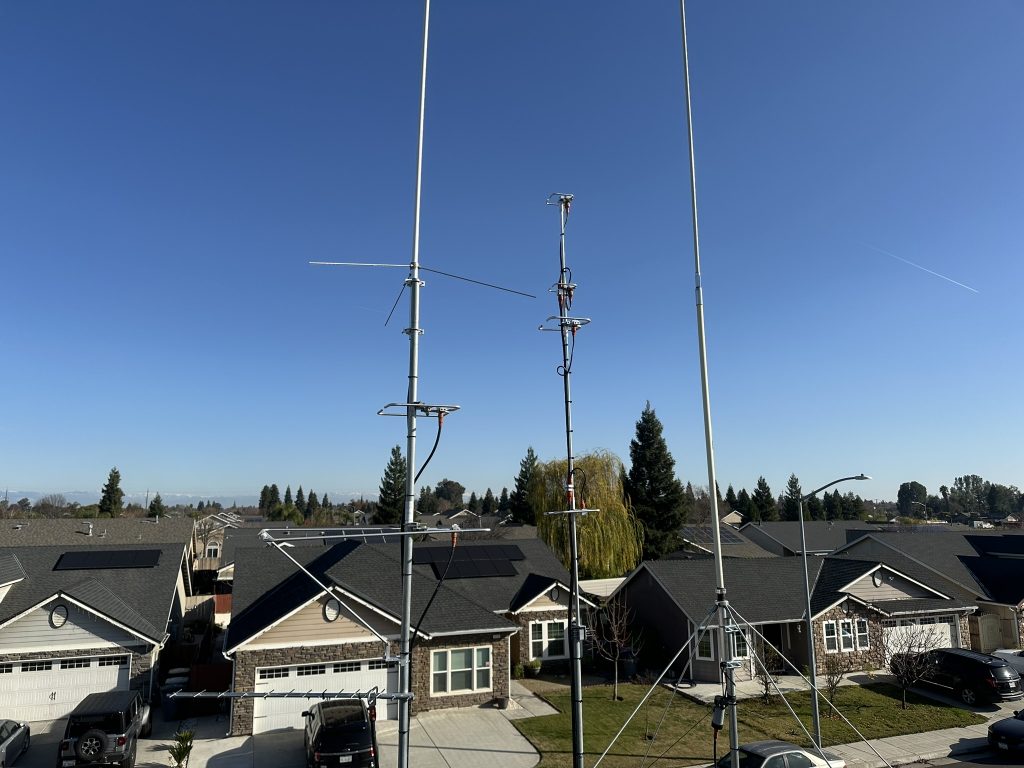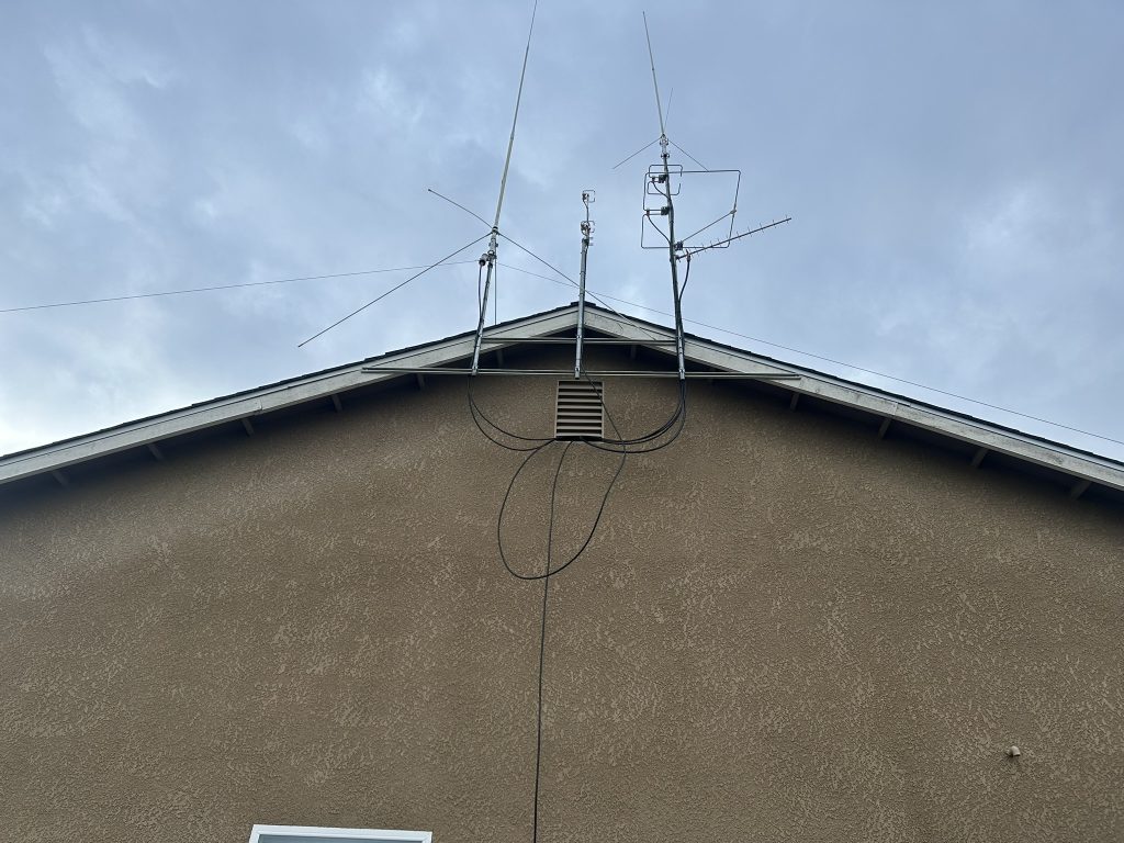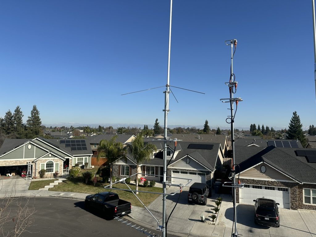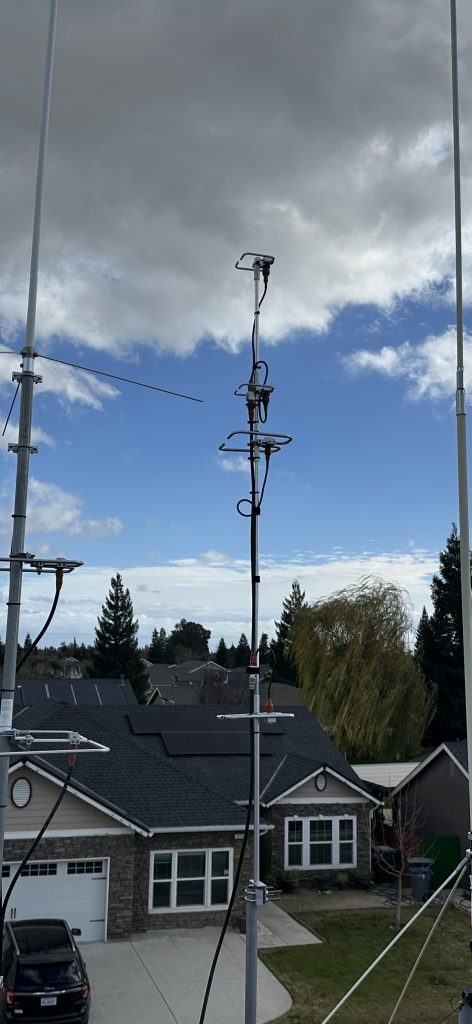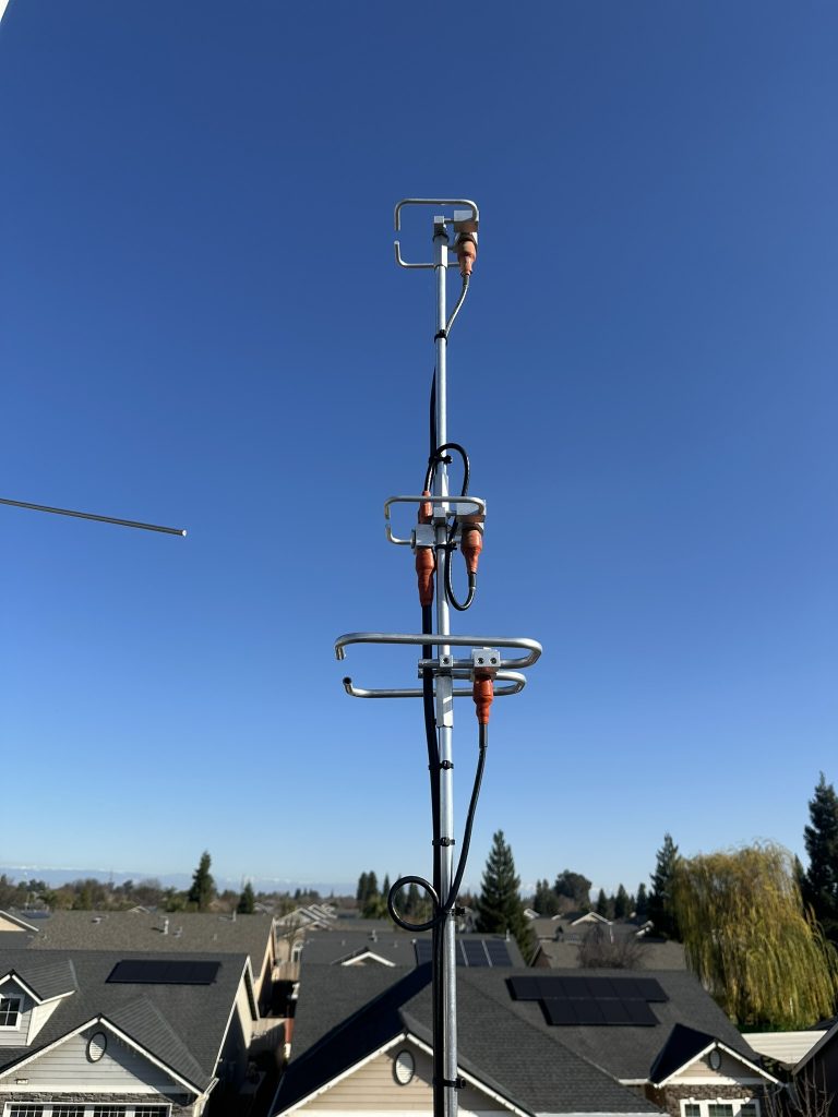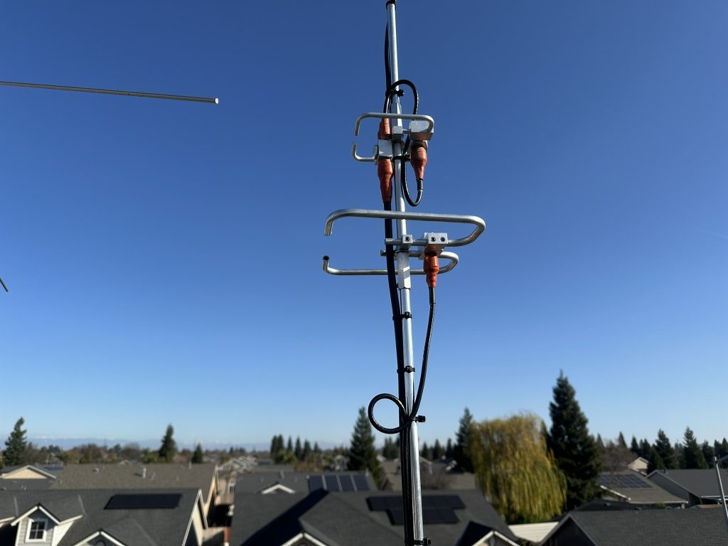 This weekends project was getting a set of stacked 222 HO loops added to the roof. I ended up removing my 432 HO loops and attaching them on top of the new 222 HO loops then remounting everything to my center mast. Hopefully the 432 antenna benefits from being a little bit higher. I had to cut a bit off the 222 HO loops in order to get everything tuned. I should have my transverter in January but in the meantime I have been able to make contacts on a few FM repeaters with this antenna being horizonal and 5w from a handheld.